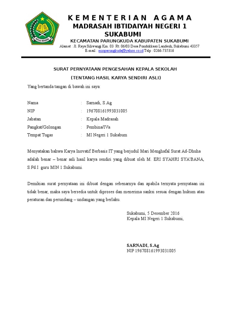 Surat Pernyataan Pengesahan Kepala Sekolah Lkib Pdf